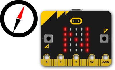 第一次使用羅盤,你得校正它 首次使用micro:bit指南針時,必須先校準。 螢幕上會出現一個小遊戲,您必須傾斜micro:bit點亮每個LED,接著就可以開始使用了。